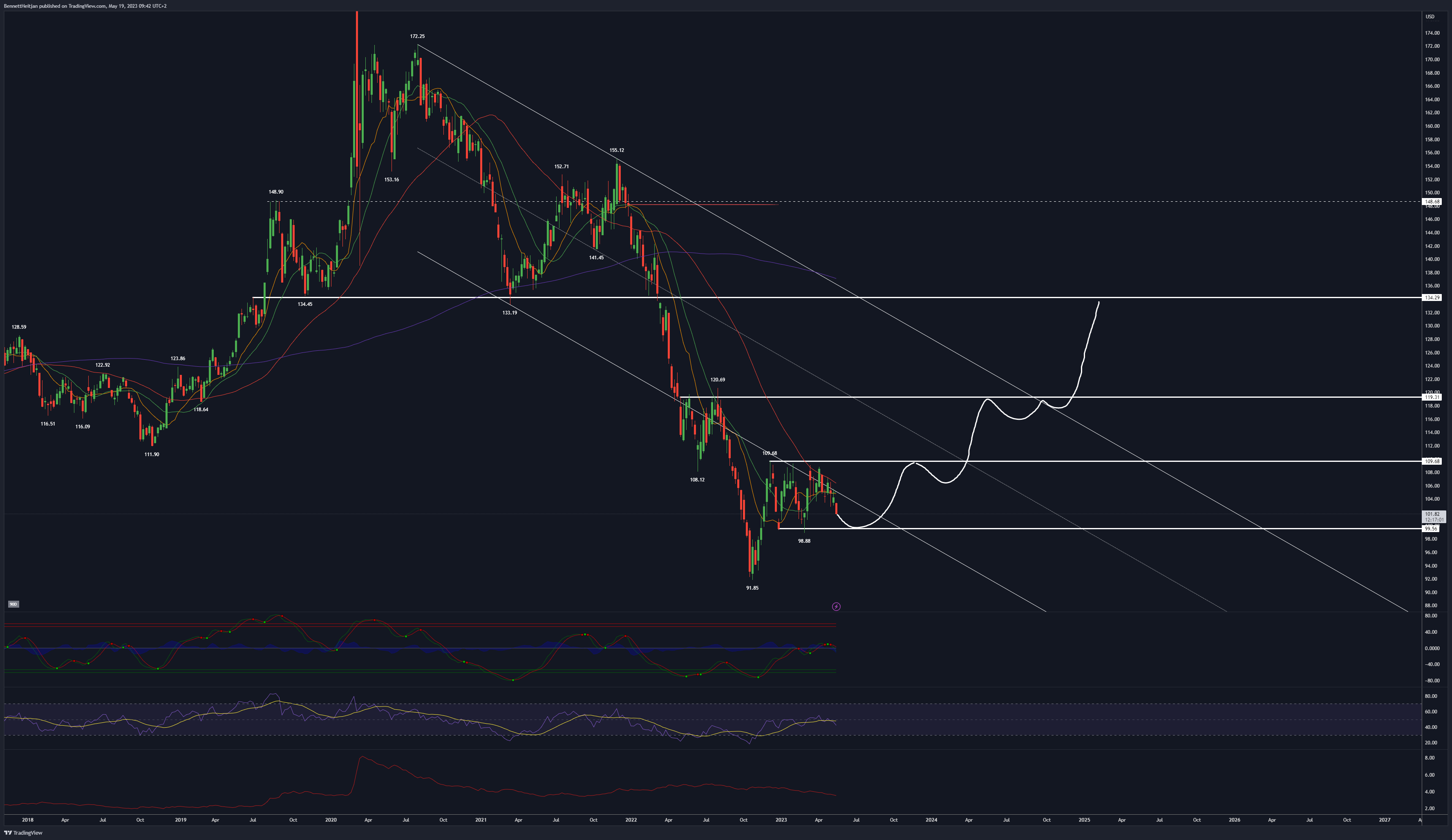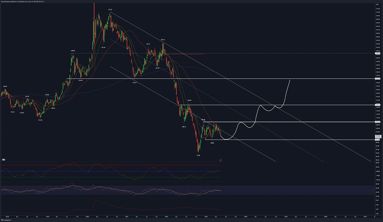 Und nun? Wer mir schon länger folgt, weiß, dass ich ein großer Freund von 20-jährigen US-Staatsanleihen bin, die über den TLT ETF abgebildet werden. Seit mehreren Monaten verkaufe ich darauf erfolgreich Optionen und sammle jeden Monat beträchtliche Prämien ein. Eine klassische Long-Positionierung kommt erst ab einem bestimmten Preisniveau in Frage. Ab einem effektiven Kurs von $100 (Ausübungspreis - Prämie) wird TLT für mich persönlich interessant. Hier erhalte ich nicht nur eine Rendite von 4% p.a., sondern diversifiziere zusätzlich mein Portfolio. Zudem kann ich gegebenenfalls Call-Optionen strategisch verkaufen, um auch bei stagnierender Inflation und längeren Seitwärtsphasen einen beträchtlichen Cashflow zu generieren.