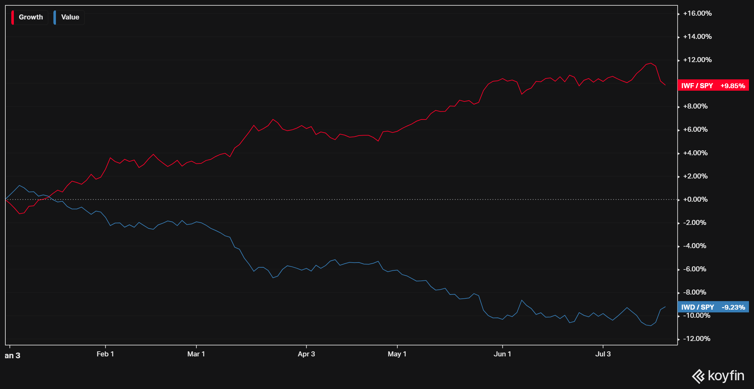 Das nachfolgende Diagramm zeigt eindrucksvoll, wie stark Growth-Aktien im Vergleich zu Value-Aktien seit Anfang des Jahres performt haben. Diese Beobachtung passt gut zur vergangenen Liquiditätsdynamik. Wachstumswerte sind nicht nur aus fundamentaler, sondern auch aus technischer Sicht überhitzt. Eine Rotation von Wachstum zu Value ist daher nicht nur aus makroökonomischen Gründen zu erwarten.
