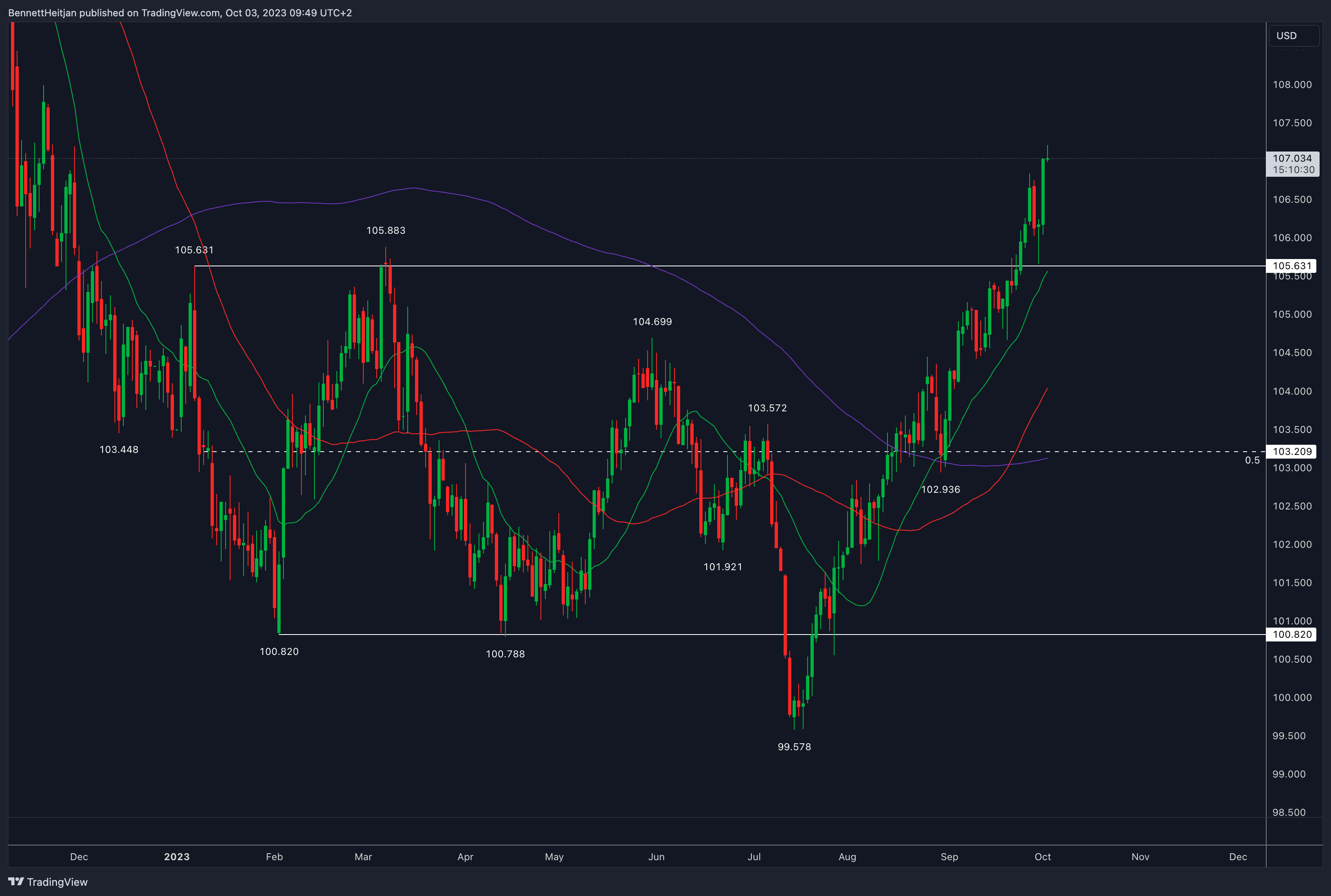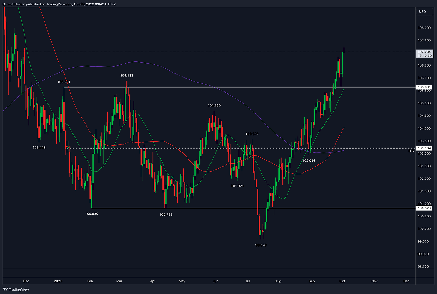 Ich finde solche Aussagen stets heikel, da sie zu vage sind. Doch ich denke, jeder kann nachvollziehen, dass, sollten die langlaufenden Anleihen weiter steigen und der Dollar weiter zulegt, dies extreme Konsequenzen in Form eines finanziellen Desasters nach sich ziehen wird. Man kann nur hoffen, dass makroökonomische Daten – also schwache Daten – diese Woche für etwas Stabilisierung im Anleihenmarkt sorgen. Ein starker Arbeitsmarktbericht am Ende der Woche könnte sicherlich zu einer Kapitulation führen.