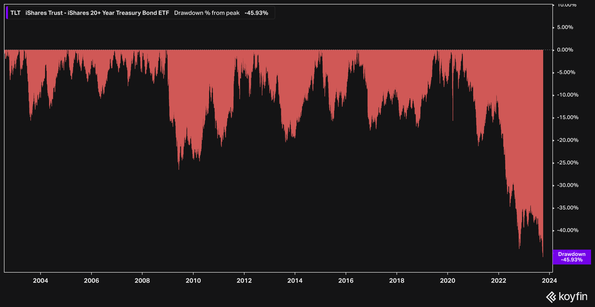 TLT ETF hat den größten prozentualen Drawdown vom Höchststand jemals.