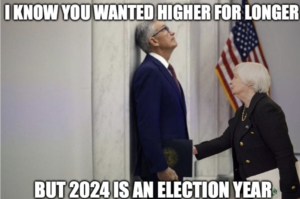 Die Fed nimmt, wie von vielen erwartet, den massiven Zinskürzungsphantasien des Marktes ein wenig die Luft raus. Die Renditen auf der gesamten Zinskurve steigen leicht, der Aktienmarkt hat einen kleinen Dip der gekauft wird.