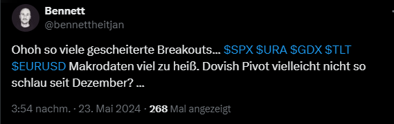 Rückblickend lässt sich das leicht behaupten, doch ich hatte dies bereits 25 Minuten nach der Börseneröffnung auf X (ehemals Twitter) als gescheiterten Ausbruch deklariert.