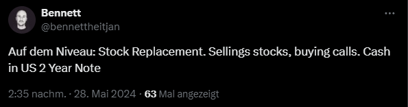 In diesem Fall würde man seine Aktienbestände verkaufen und sie gegen gleichwertige, am Geld oder leicht aus dem Geld liegende Call-Optionen mit einer Laufzeit von über 90 Tagen (90+ DTE) tauschen. Bei der aktuell noch niedrigen Volatilität sind die Kosten dafür überschaubar. Sollte es zu einer stärkeren Korrektur kommen, würde man lediglich das gezahlte Premium verlieren. Sollte der Markt jedoch weiter steigen, bleibt man weiterhin beteiligt. Dies bietet ein deutlich besseres Risiko-Ertrags-Verhältnis, falls man überhaupt am Markt beteiligt bleiben möchte.