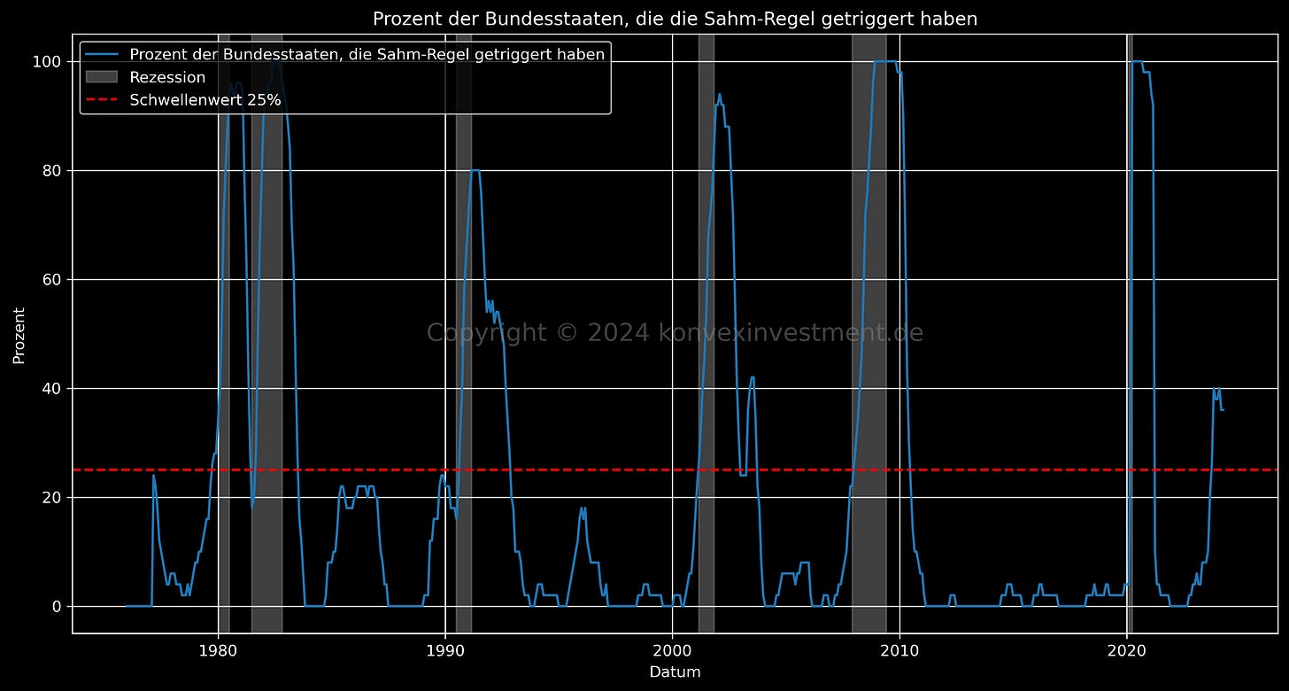 Die von mir erstellte Grafik verdeutlicht zudem, dass in historischen Vergleichen, wann immer der Schwellenwert von 25% überschritten wurde, dies stets mit einer Rezession einherging.
