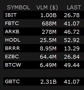 Obwohl ich mir nach dem ETF-Event größere Kursschwankungen vorgestellt hatte, war es interessant zu beobachten. Das Handelsvolumen der neuen Spot-ETFs war extrem hoch, was eine gute Ausgangslage (für die Emittenten) darstellt.